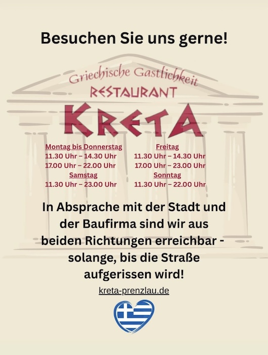 Restaurant KRETA, Erika-Kliemann-Weg 3, 17291 Prenzlau